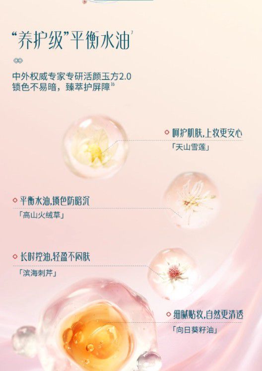 养肤理念突出: 高含量精华与【4重东方臻油】添加,真正做到持妆同时养肤,告别暗沉,养出通透“好气色”。