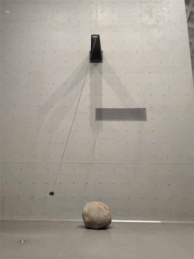 在材料运用上,他偏爱使用石材、木材、竹子等自然材料,也会有金属,机械等材料的介入,这些材料作为构成张琪凯艺术语言的主要元素,也构成了他的艺术世界。他对材料的选择和运用基本上是以原生态为选择依据,不求“奇”“怪”基本上没有艳丽的色彩,运用在作品中,有着鲜明的极简主义特征,通常是几块单色的中性色表达,这种克制的色彩选择与中国传统绘画的 "墨分五色" 理念一脉相承,体现了东方美学中 "绚烂之极归于平淡" 的审美追求。