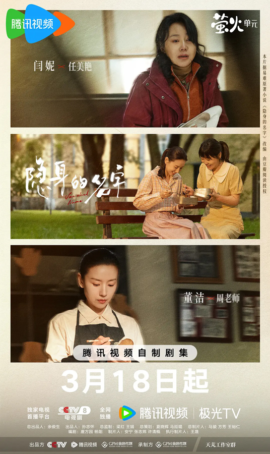 2026年3月18日,由杨阳执导,倪妮、闫妮、刘雅瑟、刘敏涛等领衔主演的32集女性悬疑剧《隐身的名字》登陆荧屏。这部改编自豆瓣阅读小说《隐身的名字》(作者易难)的作品,以2023年一桩抄袭案为切口,通过非线性叙事层层揭开2004年旧案的真相,将任小名、柏庶、周芸、任美艳、葛文君等女性跨越时空的命运羁绊娓娓道来。没有强刺激的悬疑反转,却以细腻的笔触刻画了女性之间共情、互助与救赎的力量,被观众誉为“国产女性悬疑剧的标杆之作”。